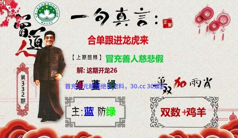| 332期四肖 | 蛇鸡狗龙 | 开:龙26 |